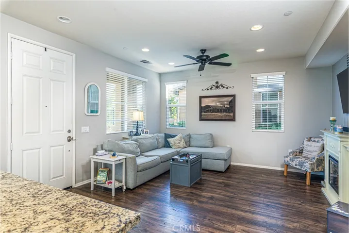 Check out this awesome end-unit condo located in Murrieta’s coveted The Ridge at Cal Oaks community! This beautiful home is at the southern end of The Ridge and features expansive views of the city of Murrieta and our lovely coastal mountains while being walking distance to shopping, restaurants, schools and much more. Being an end unit means you’ll only have one shared wall with your neighbor for added privacy. You’ll enter your new home through a lovely gated courtyard which features plenty of room for outdoor furniture and a BBQ to enjoy our sunny days and cool evenings. Upon entry you’ll find your well appointed kitchen, family room and dining area perfectly laid out with floor clad with plank flooring. The kitchen features high end white cabinetry, slab granite counters, stainless appliances and custom paint. The quaint dining area is surrounded by windows with horizontal blinds and loads of room for you and your guests. Down the hall you’ll find a spacious office/den perfect for many different possible uses and a convenient half-bath nearby along with access to your roomy 2 car garage. At the top of the stairs you’ll step in a very user friendly loft area which can serve multiple purposes such as a quiet reading area for homework, mini-family room for playing video games or just watching TV. This room also features plenty of linen storage. The master bedroom is very roomy and features large windows with views to the south, a ‘carve out’ for the bed which gives a lot more room around the end of your bed as well as an en-suite bathroom complete with oval tub, large shower, twin vanity sinks and a massive walk-in closet. The remainder of the 2nd level features two more good-sized bedroom and a hall bathroom. Additionally, this floor plan boasts an upstairs laundry room which is ideal…because you don’t have to haul your clothes downstairs to the garge to wash them. The Ridge at Cal Oaks ideally located for those have to commute to the coastal counties regulary as I-15 access is simply 2 mintues away. This community also features a lovely pool and spa (which is just steps away from your new home), as well as a gym/exercise room, outdoor BBQ area and a children’s playground. Old Town Murrieta is a just a few stop lights to west and Baron’s Market is practically next door. This truly is a great opportunity to live in one of our nations safest cities; close to everything this beautiful part of California has to offer. Hurry…this one won’t last!