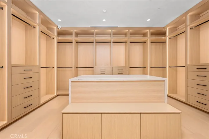 The open-concept layout flows into a gourmet kitchen that’s a dream for culinary enthusiasts and entertainers. Taj Mahal stone countertops and state-of-the-art appliances set the stage, complemented by a secondary “dirty kitchen” for additional prep space. A custom Taj Mahal dining table serves as an elegant centerpiece for memorable gatherings.
