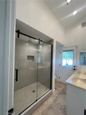 Retire to three generously sized bedrooms filled with natural light, including a primary suite with direct pool access and a spa-like bath featuring a modern glass-walled rainfall shower. An additional massive finished flex space (converted garage) offers incredible versatility as a high-end home gym, creative studio, or executive office.