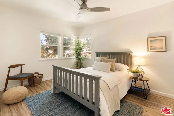 Come see the best value condo in West LA! 3641 Kalsman Dr Unit 4 is a top-floor 2-bedroom, 1.5-bathroom condominium that was lovingly upgraded by an owner who paid attention to the details. Elevated interior features include rigid-core luxury vinyl plank flooring laid over acoustic-insulating cork, double-hung dual-pane windows with custom treatments, and solid wood interior doors, all of which maximize durability and create a quiet, relaxing atmosphere. The kitchen was renovated with chic Caesarstone countertops, a matching subway tile backsplash, soft-close cabinetry, sleek stainless-steel appliances, and water filtration systems for both the kitchen sink and the automated ice machine. Recessed and dimmable lighting throughout further add to the premium feel of the unit. Both bedrooms are spacious, private retreats. Oversized closets with sliding mirror doors and whisper-quiet Casablanca ceiling fans ensure year-round comfort. The in-unit washer and dryer, central heat, and a private one-car garage with built-in storage cabinets provide ultimate convenience. Residents also benefit from an additional parking space in the common area and plenty of on-site parking for guests. The condo sits within Cameo Woods, a 24/7 guard-gated community providing resort-style living. This is one of the best-positioned units in the complex, centrally located away from the noise of any public streets. The top-floor elevation allows in excellent natural lighting. Picturesque views of mature trees and grassy courtyards from every room enhance the sense of peace and tranquility that other units simply do not provide. Life within this community feels like living in a private park, with over 20 acres of landscaped grounds to enjoy. Amenities include a pool, two hot tubs, a tennis court, a dog run, a community garden and a clubhouse. This home offers easy access to Downtown Culver City, West Adams, Downtown LA, LAX, local beaches, the Baldwin Hills Scenic Overlook, Kenneth Hahn Park, and the Expo Line, making it an ideal choice for those seeking a move-in ready home in a vibrant neighborhood.
