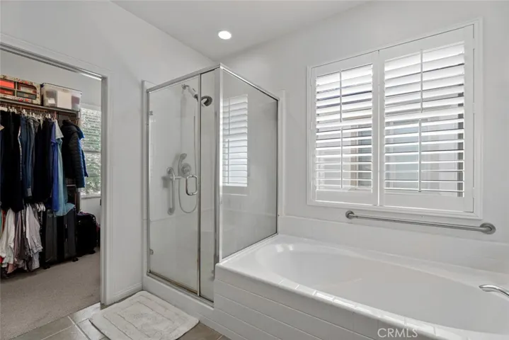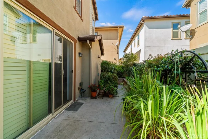 The primary suite features a walk-in closet with a north-facing window, creating a bright and airy retreat. Step outside to a beautifully curated backyard oasis with custom plant trellises, fragrant blooms of azalea, osmanthus, and jasmine, along with organic raised garden beds, a textured concrete patio, and built-in ledge seating—perfect for relaxing or entertaining.
