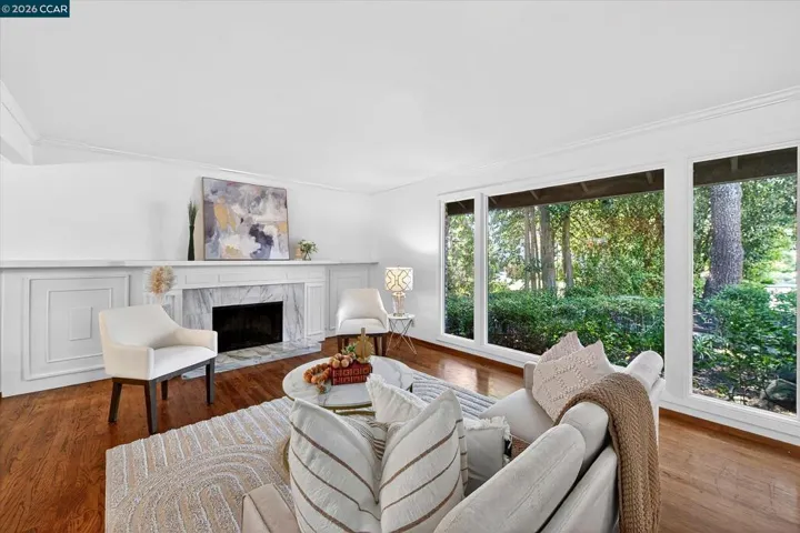First time on MLS. Situated at the end of a quiet cul-de-sac. Lovingly cared for. Traditional two-story. Backs to the 5th green of the San Ramon Golf Club, an active 18-hole championship course. Oversized driveway. Mature landscape surrounds the property, offering privacy and protection. Upstairs secondary bedroom provides a glimpse of the home’s potential for expanded golf course views, inspiring possibilities to reimagine the outdoor space. Backyard is designed for entertaining; Poolside bar, in-ground spa and fountain, all with full sun exposure. Outside of the fully fenced pool area is more yard/lawn/play space. Inside welcomes you with double doors, formal entry, spacious living room with beautiful marble fireplace surround and formal dining area. The eat-in kitchen leads to a great room highlighted by a dramatic, vaulted wood-beam ceiling and built-in bar area. Dual-pane sliding doors provide easy access to both sides of the yard. Flexible floor plan includes one bed and full bath at the entry level. Upstairs the primary suite shares a large covered balcony with one of the secondary bedrooms. Additional features include remodeled baths, updated flooring, indoor laundry, updated HVAC, newer pool heater, whole house fan and more.