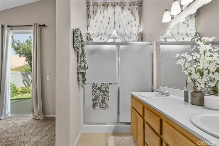 The well-appointed kitchen features a convenient walk-in pantry, ensuring ample storage for all your culinary needs. Retreat to the expansive primary bedroom, which also features sliding doors leading to the serene backyard. The en-suite bathroom is designed for comfort, showcasing dual sinks, a soothing shower, and a generous walk-in closet complete with custom shelving units.