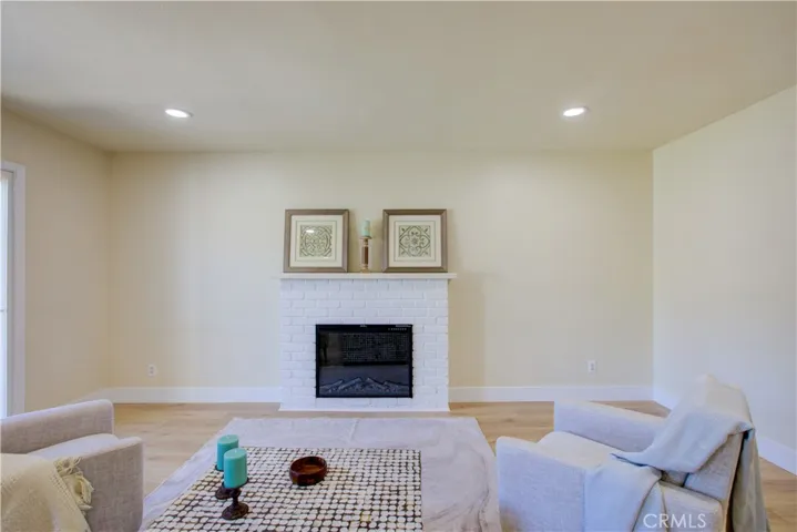 Welcome to this beautifully updated 3-bedroom, 2-bath home offering 1,284 sq ft of open-concept living space. Built in 1974 and thoughtfully remodeled in 2026, this home blends classic charm with modern upgrades throughout. Step inside to find fresh interior and exterior paint, new laminate flooring, recessed can lighting, and stylish new ceiling fans in every room. The spacious open floor plan creates a seamless flow between the living, dining, and kitchen areas perfect for both everyday living and entertaining. The renovated kitchen features new countertops with a built-in breakfast bar, along with brand-new appliances including an electric range, microwave, dishwasher, and refrigerator. The inviting family room centers around a cozy fireplace with an electric insert and offers direct access to the backyard through a sliding glass door. Outside, enjoy an open patio area ideal for relaxing or hosting gatherings, plus a convenient garden shed for extra storage. Additional highlights include a 2-car garage, newer windows, and an updated roof, along with central heating and air conditioning for year-round comfort. This move-in-ready home combines modern upgrades with functional design.