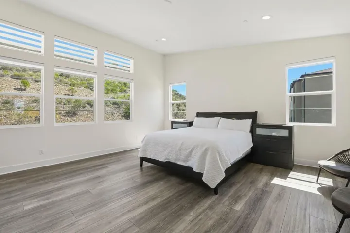 Located within the 3Roots master-planned community, this modern Lotus Plan 1 home offers a seamless blend of functional design and high-quality finishes. The open-concept great room features a large center island and durable tile flooring throughout the first level, complemented by luxury vinyl plank flooring on the stairs and second floor. A rare entry-level bedroom and full bathroom provide flexibility for guests or a home office, while the second floor opens to a versatile loft and a private balcony. The low-maintenance backyard is finished with interlocking concrete pavers, and the home includes a tankless water heater and fully paid-off solar for maximum energy efficiency. Residents enjoy exclusive access to the 3Roots Fit and Recreation Center near the major employers of Sorrento Mesa.