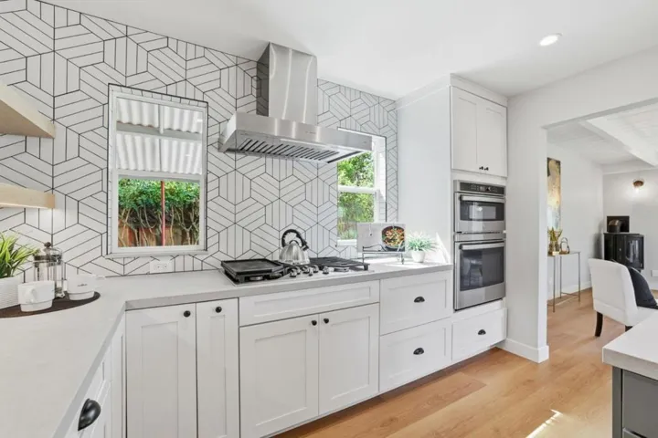 Welcome to this charming East facing Santa Clara home located on a quiet street, peaceful prime central location. Close to major freeways and expressways, leading tech companies including Nvidia, Intel, and Apple, Levi Stadium, Santa Clara University, Kaiser Hospital, and premier shopping and dining at Valley Fair and Santana Row. Featuring stunning open concept gourmet kitchen with super size stone counter and island, custom white cabinets, stylish backsplash, stainless steel appliances, gas cook top with exhaust vent, microwave, refrigerator, disposal a deep sink, and walk-in pantry. Tons of counter space and storage. Large breakfast bar and hi tech lighting. All of this opening up to a bright and spacious family room featuring a cozy gas fireplace and oversize windows. Updated bathrooms. Separate laundry room featuring built-in cabinetry, large laundry sink. Double pane windows, custom molding, decorative and recessed LED lighting, air conditioning and smart thermostat. Two car garage with automatic door opener. The easy-care backyard features numerous fruit and citrus trees, raised planter beds, synthetic turf, composite deck with accent lighting. Automatic front and rear sprinklers with BHYVE controller to water the mature landscaping. Home remodeled with permits.