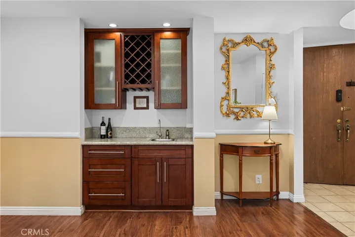 Upon entry, a welcoming foyer leads into a spacious living room highlighted by a stylish designer wet bar. Residents will appreciate the generously sized bedrooms, a dedicated breakfast area, and a private balcony. The gourmet kitchen is equipped with premium granite countertops and stainless steel appliances, combining both functionality and elegance. The luxurious primary suite offers a spa-inspired bathroom complete with a separate shower, a soaking tub, and dual vanities, providing the ultimate relaxation experience.