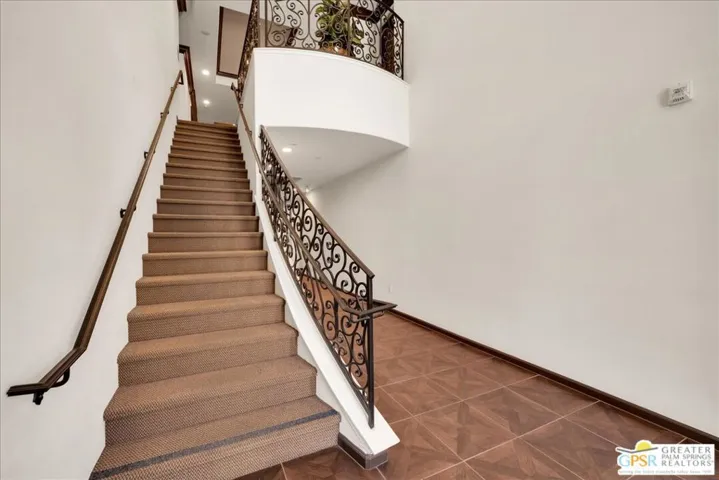 Welcome to Villa Portofino! The premier 55+ active adult gated community known for its Italian-inspired architecture and resort-style living. This beautiful top floor 2 bedroom, 2 bath unit has elevator access and is a very accessible unit. This very popular model features an open floor plan with living, dining area in between the bedrooms on opposite ends. Great privacy! The open kitchen features a center island, lots of counter space, a pantry and a separate laundry room. The large primary suite opens to the private balcony and features a large walk in closet and spacious spa-like bath with dual vanities and large walk-in shower. The 2nd bedroom has 2 closets and is very. The stylish second bath has been upgraded to be fully accessible This unit also comes with a 2 car garage that has direct access to the lobby. A new takless water heater was recently installed. Amenities at Villa Portofino include a 30,000 Sq. Ft. Clubhouse that features a 100-seat movie theater, fitness center, yoga studio, library, and billiards room. Dining at The Bistro at Villa Portofino, which offers full-service dining and a sports bar. Other ammenities include a junior Olympic-sized pool, spa, concierge services, and a full calendar of social activities. HOA fees cover water, trash, sewer, high-speed internet, cable TV, building insurance, and pest control. Community solar helps to provide low electric bills. This is desert resort living at it’s best!