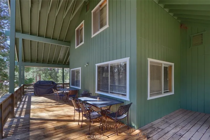The main cabin, built in 1986, offers approximately 2,442 square feet with 4 bedrooms and 2.5 bathrooms, comfortably accommodating up to 10 guests. Warm beamed ceilings and rich tongue-and-groove paneling create a cozy alpine ambiance, while spacious living areas, a wood-burning stove, and convenient indoor laundry enhance comfort and functionality. A versatile 451-square-foot lower level provides additional storage space or the perfect setting for a game or recreation room.