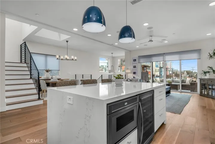 The stylish kitchen offers a center island with quartz countertops, Thermador oven/range, dishwasher, wine refrigerator, and microwave, ideal for both entertaining and everyday living. A loft with both ocean views and city views adds flexible space, and the primary suite with a custom walk in closet, serves as a private retreat with a spa-like bath, soaking tub, and walk-in steam shower.