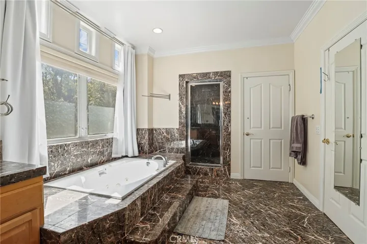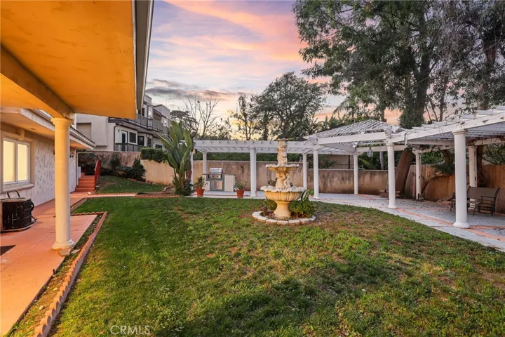 Gated Mediterranean estate home in coveted Sherman Oaks offers a grand entry with wrought iron staircase opening to a spacious, light-filled 5-bedroom, 4.5-bathroom living space with approximately 4,847 sq ft, soaring ceilings, and a versatile layout designed for both everyday living and entertaining. The large dining room and living room with fireplace flow seamlessly into a family room with a bar, fireplace, and balcony with retractable awning. The spacious kitchen with sitting area and center island provides a professional line of stainless-steel appliances, as well as ample cabinetry and workspace. Home offers a private level with separate entrances, complete with a guest room with full bathroom and walk-in closet, as well as two additional large bonus rooms, ideal for a media room, home studio, gym, or game room. Main level offers a sizeable bedroom with a full, private en-suite bathroom and walk-in closet. Upstairs features an open library, well-sized secondary bedrooms with walk-in closets outfitted with built-in shelving and cabinetry, and Jack-and-Jill bathroom. The oversized primary suite provides a private retreat with sitting area, vaulted ceilings, fireplace, dual walk-in closets, and a luxurious spa-style bathroom featuring dual sinks and steam shower. The resort-like backyard with covered terrace area designed for large-scale entertaining, grassy yard, and room for a pool is surrounded by lush and mature fruit trees providing privacy and prestige. Built with solid structure in a prestigious neighborhood, this home presents a fantastic opportunity for buyers to customize while building long-term value in a prime location with easy access to eateries and shopping, the 101 and 405 Freeways, top-rated schools, and parks.