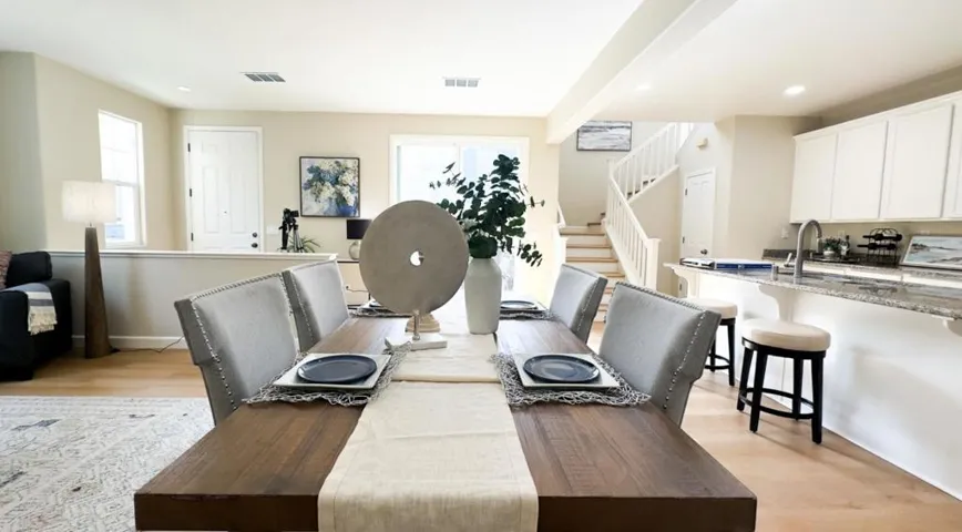 Welcome to 682 N 9th Street, a light and bright home in the desirable Gardens at 9thvStreet community, where convenience meets quiet neighborhood charm. Inside, new wide plank floors throughout and paint create a bright, welcoming atmosphere. The kitchen features granite countertops, gas range, center island, and large walk-in pantry, ideal for daily living and entertaining. The living room opens to a quaint private courtyard through a sliding glass door. Upstairs, the primary suite offers a large walk-in closet, dual sink vanity, deep soaking tub, and separate walk-in shower. Three additional bedrooms and a dual-sink hall bath complete the upper level, offering comfortable space for family, guests, or home office. Additional features include upstairs laundry, a two-car finished garage, downstairs half bath, and side yard. Situated just minutes from Japan town, dining, shopping, parks, and major commute routes, this home delivers unbeatable access to all that San Jose has to offer.