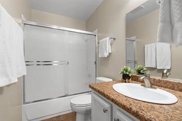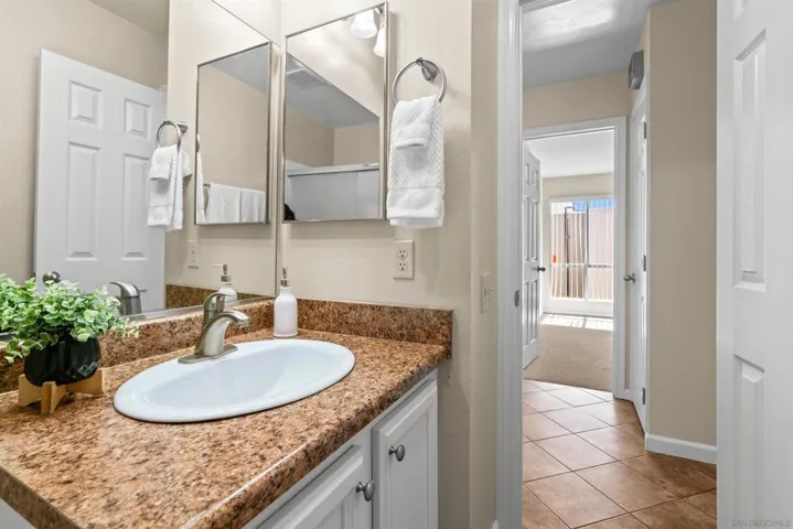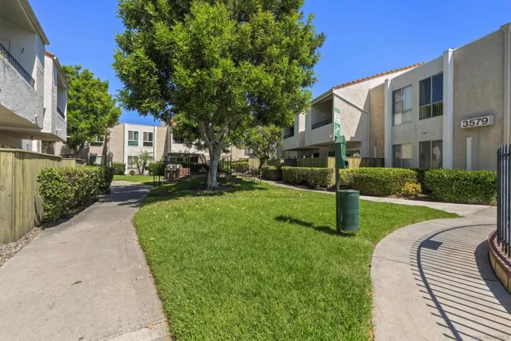Light, bright & airy! This terrific top floor Serra Mesa condo features vaulted ceilings in the living room, a spacious master bedroom w/ a huge 3 door closet and upgraded shower doors in the master bath. There’s also a nice wall AC unit in the living room for those warm Summer days. Upgrades include fresh paint, new carpet, newer 6 panel interior doors & updated light fixtures. There’s even 2 assigned parking spots! Please see supplement for more. Welcome home! The complex amenities include a wonderful pool area complete with spa and kiddie pool, a rec room w/ a pool & ping pong table, BBQ area & a large fenced in dog run.