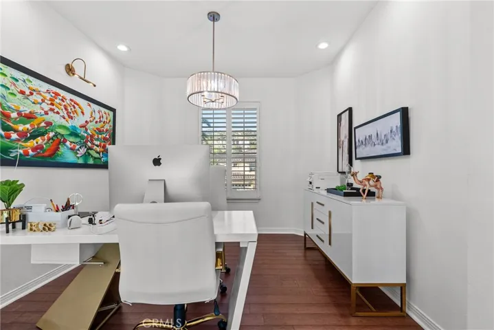 Upon entry, soaring ceilings and abundant natural light showcase the home’s open and airy layout. The interior features a sophisticated transitional design with extensive recent upgrades, contemporary lighting, and carefully curated details that create a modern yet timeless feel. The gourmet kitchen opens seamlessly to the spacious family room and living areas, offering the perfect setting for both everyday living and effortless entertaining.