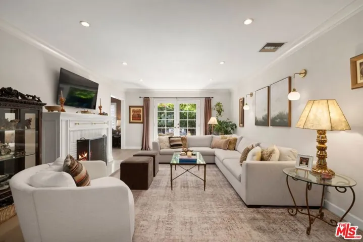 Situated on a picturesque corner lot in prime Cheviot Hills, this beautifully updated single-story residence offers three bedrooms and three bathrooms, blending timeless traditional charm with refined, stylish interiors. A welcoming foyer opens to a spacious, sun-filled living room featuring crown molding, recessed lighting, French doors, newer White Oak hardwood floors, and an elegant fireplace. Just beyond, the formal dining room provides a warm and inviting space for entertaining dinner guests and flows seamlessly into the gourmet kitchen, complete with marble countertops, a subway tile backsplash, stainless steel appliances, custom cabinetry with designer hardware, and a cozy breakfast nook. The inviting family room, centered around a second fireplace, provides a warm and comfortable space to unwind. The primary suite is a true retreat, showcasing generous closet space, hardwood floors, custom shutters, and en-suite bathroom with dual vanities, stone countertops, and stone tile shower. French doors open to a private, fully hedged backyard with low-maintenance turf and a spacious brick patio, ideal for seamless indoor-outdoor living and entertaining. Additional highlights include two well-appointed guest bedrooms, two additional bathrooms, a dedicated laundry room, a two-car garage, and an oversized driveway. Ideally located in the highly sought-after heart of Cheviot Hills, this exceptional residence is just moments from Fox Studios, the Griffin Club, and the premier shopping, dining, and entertainment of Westfield Century City.