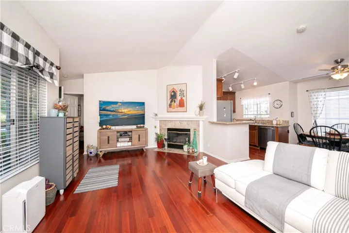 Rarely on the market! Beautiful 2 Bedroom, 2 Bathroom Condo in Gated Canyon Villas in Aliso Viejo. Very private location and entrance with green belt view. End unit with no one above or below. Open Floor plan with 2-bedroom, 2-bathroom home features dual en-suite bedrooms, offering ideal comfort and privacy. Newly Painted, Light and bright interior with Granite Countertops in kitchen. Whole house engineer wood throughout and the convenience of in-unit laundry and one car garage + 1 assigned parking spot. Unique private outdoor entertaining/front patio area. Canyon Villas has 2 resort-style pools, spas, fitness center, and clubhouse. Walking distance to Town Center and close to the 73. This is a fabulous property waiting for you to come enjoy!