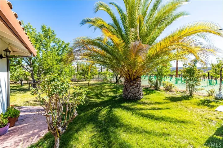 As you enter, you’ll be greeted by the warm charm of Spanish tile flooring that flows gracefully throughout the home. The thoughtful split floor plan ensures privacy, with the primary suite situated on one side and the guest bedrooms and office on the other. At the heart of the home lies a generous kitchen, ideal for entertaining guests or crafting delicious preserves from the bountiful fruit trees flourishing on the property.