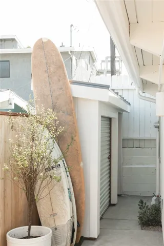 Outdoors, a private, fenced patio extends the living space and invites gatherings with built-in seating and a cozy fire feature. An outdoor shower enhances the beach-town convenience.