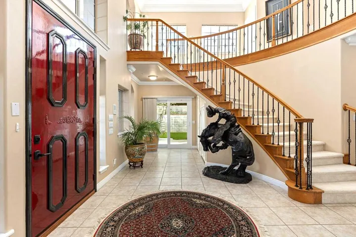 Custom-built Mediterranean elegance. Breathtaking Views. Privacy. A gated private paradise. 512 sqft, 1Br 1 Ba ADU fully legal, with estimated rental value of approx $2,500/month. Dedicated parking, laundry, ideal for rental income or extended family. 4072 sqft main home thoughtfully remodeled/updated Kitchen & Bathrooms. 5 Bedrooms, 3.5 Bathrooms, private Office off the Family room with it’s own exterior exit. Dramatic 19 feet Entry foyer with stunning crystal chandelier, a grand Mediterranean welcome. Wide crown moldings and baseboards throughout. Living room with new electric fireplace and wet bar with refrigerator. Family room with wood burning fireplace. Open Dining room. Elegant Master suite with wet bar, sliding door to huge balcony to enjoy the view and sunset. Large Utility room with counter and sink. Remote controlled fire sprinkles on the roof. Split unit AC and Furnace. 3 car Garage with separate storage room. Wiring in place for hot tub on back patio. All organic vegetable garden, 34 producing year-round fruit trees and many grapevines. Large front terrace with fire-pit and water fountain. Covered patios front and back perfect for BBQs and entertaining. Ample parking spaces, room for RV and Boat. Owner owned solar panels. Close circuit security system and Ring cameras. “A jewel on a perfect spot” – Convenient location and best climate.