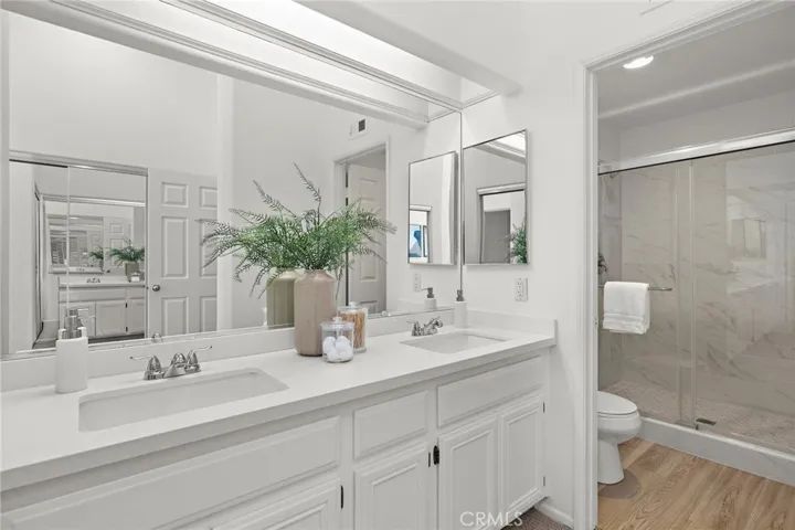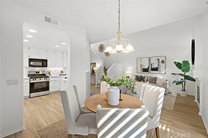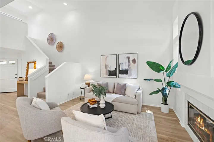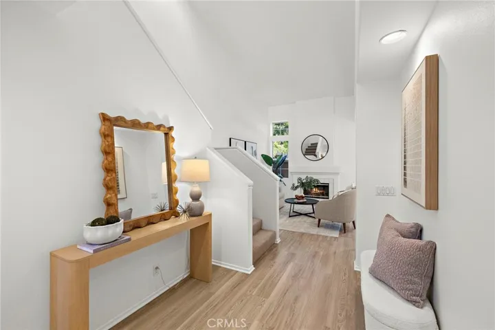 ABSOLUTELY STUNNING! A beautiful just remodeled and updated, move in ready home in the highly sought after Sonoma Court community, 73 Morning Glory blends modern upgrades, natural light, high ceilings and an ideal central location. This interior unit, close to pool, offers approximately 1,422 sq. ft. of thoughtfully designed living space, featuring 3 bedrooms, 3 FULL bathrooms, and a 2 car attached garage with exceptional custom enhancements. The open floor plan is highlighted by soaring approx. 20 foot vaulted ceilings, Luxury Vinyl Flooring, high grade designer low pile carpet, and a spacious and open living room anchored by an inviting fireplace. The remodeled kitchen is standout, showcasing new crisp white quartz counter tops, white lacquered cabinetry, extra side shelves, quartz backsplash, stainless steel deep sink. Eat in dining area with view of private patio. Upstairs, the primary suite offers a bright and open layout, two closets and an ensuite bathroom with dual sinks, a step-in shower, and a private toilet closet. The secondary bedrooms with mirrored wardrobes and a full bath complete the upper level. A private enclosed patio provides the perfect space for outdoor dining, and entertainment. Convenience is built into every detail, Gated entry to front door for added privacy, an indoor laundry, several storage areas, recessed LED lighting, and direct garage access. Residents enjoy access to SAMLARC amenities, including pools, parks, trails, the Beach Club and lagoon, sports courts, and community facilities. The home is ideally located near top rated schools, shopping, dining, and the CA 241 toll road. This property offers comfort, style, and an unbeatable location in Rancho Santa Margarita.