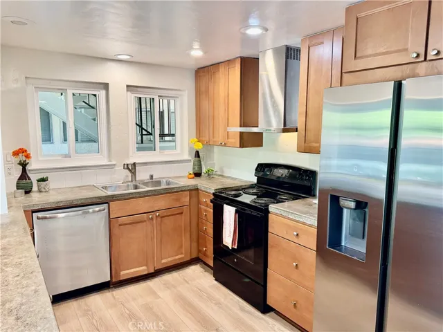 You will fall in LOVE with this stunning Home! This stylish home offers an inviting layout with a wonderful versatility and a location designed for enjoyment. Large balcony offers exceptional outlook to a lush landscape, trees, sunsets & community. With an open floor plan, this home provides a seamless flow that makes everyday living & entertaining enjoyable! Filled with natural light, the great room flows into the kitchen, a welcoming space for both everyday moments and gatherings. At the center of it all, the beautifully remodeled kitchen is ideally positioned for casual meals, conversation, and hosting, truly the heart of this home. Take pleasure in the professionally remodeled large open kitchen w/shaker style, cherry wood cabinets, stylish concrete countertops, stainless steel sink, brushed nickel faucet, stainless steel appliances ,standard cooktop & vented hood, refrigerator. Spacious living room with New elegant Luxury vinyl flooring thru out entry, hallway, kitchen & both baths, living room, dining room. New Luxury carpeting in both bedrooms. Smooth ceilings, recessed lighting, dual pane windows. Both baths updated with custom cabinets . Stacked washer/dryer hook-ups. Enjoy all of the incredible amenities of the resort style living in Laguna Woods Village. 27-hole championship golf course, 9-hole executive par 3 courses, tennis, paddle tennis, pickle ball, lawn bowling, 2 fitness centers, 7 clubhouses, 5 swimming pools, equestrian center, horse stables, gardening, art studio, shuffleboard courts, craft and hobby workshops, game rooms, billiard rooms, world-class woodshop, over 200 clubs and organizations. Plus, free bus transportation around the community, nearby shopping, restaurants, and bus trips. Shopping, dining and community events are close by while the neighborhood’s central position in Orange County provides easy access to coastal destination, business center, and top schools. Combing a sought-after location with a versatile floor plan and an inviting outdoor setting, this home stands out as one of the best values in the area. This Home is more than just a house, its an opportunity to create the lifestyle you have been envisioning in a community know for its comfort, convenience and charm. Beautiful Laguna Beach is 6 miles away!