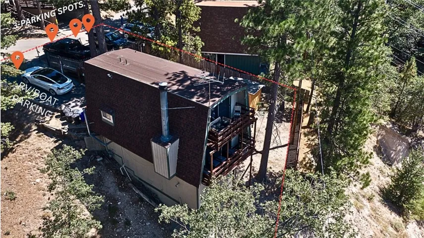 This property features rare and abundant parking, with space for up to 3 vehicles on the upper lot, plus an extended driveway accommodating 2 additional cars, a 30–40 ft boat, or even an RV—a true luxury in mountain living.
