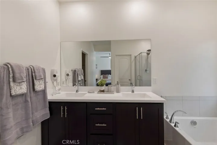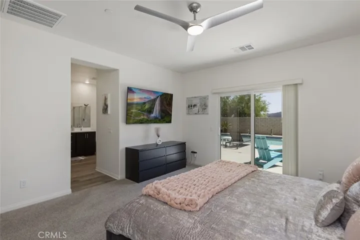 Outside, your own private resort-style backyard featuring a sparkling pool and spa, expansive paved concrete patio, and a built-in BBQ area, perfect for hosting or relaxing under the covered patio. The outdoor space is designed for year-round enjoyment with multiple seating and lounging areas.
