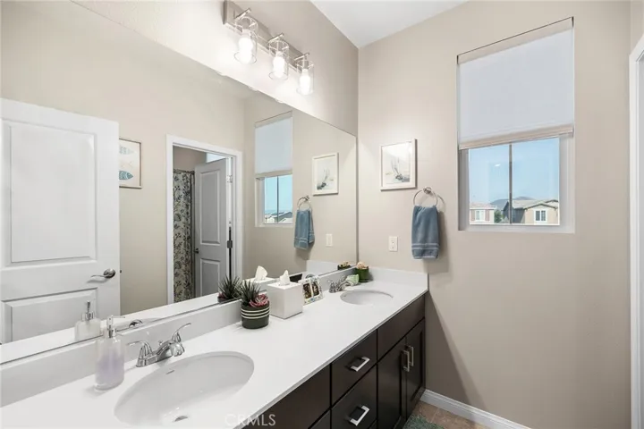Beautifully upgraded 5-bedroom, 3.5-bath executive home located on a quiet cul-de-sac in highly sought-after Spencer’s Crossing, just minutes from the Oasis Pool. This spacious 3,411 sq ft home features an open-concept kitchen with quartz counters, ceramic stone backsplash, pendant lighting, soft-close drawers, stainless steel appliances, and a vented pyramid cooktop. The great room offers dual 12-foot sliding glass doors and upgraded finishes throughout. Downstairs includes a private bedroom, with glass French doors. Additional upgrades: luxury vinyl plank flooring on the first floor, plantation shutters throughout, upgraded stair railing, and paneled interior doors. The oversized primary suite boasts a walk-in closet, en-suite bath with walk-in tiled shower, dual vanities, and added privacy door. Upstairs includes a spacious loft, 3 secondary bedrooms, and a laundry room with sink and added shelving. Low-maintenance backyard with extended patio cover and a stock tank pool—perfect for summer. Home includes PAID solar, whole-home water softener, and a 3-car garage. Spencer’s Crossing offers pools, parks, walking trails, and top-rated schools. Move-in ready!