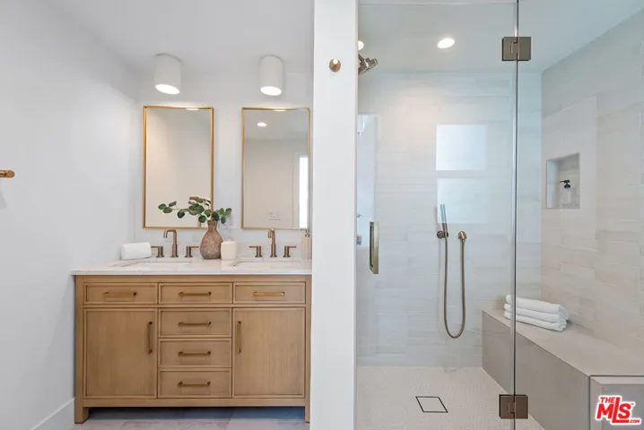 Extensively renovated 3 bedroom, 2.5 bathroom townhome offering direct street access, a large patio, and an attached 2-car finished garage. This modernized unit with designer details throughout such as wide plank oak floors, recessed LED lighting, custom built-ins, rift white oak cabinets, quartz counter-tops, and more. Offering a spacious living room and an entertainer’s kitchen with quartz countertops, stainless steel appliances, custom cabinetry, and adjacent to a separate dining area. Upstairs, the primary suite boasts a private balcony, barreled ceiling, and a beautifully updated en-suite spa-like bathroom. Additionally, upstairs offers two well-sized bedrooms and a shared bathroom. This unit also includes a separate in-unit laundry room, powder room, upgraded central air and heat with Nest thermostat, and a 2-car finished garage with an epoxy coated floor and plenty of extra storage. Villa Spezia offers a lush shaded garden pool, and fully enclosed private dog park/run behind the building. ***Extensive permits were pulled and approved by LADBS for this renovation, in addition to the HOA approval***Buyer is advised to independently verify accuracy of all information through professional inspection with appropriate professional***Broker/Agent does not guarantee accuracy of square footage, lot size, zoning, rent control, permits, use code, schools and/or other information concerning the conditions or features of the property provided by the seller or obtained from public records or other sources.***