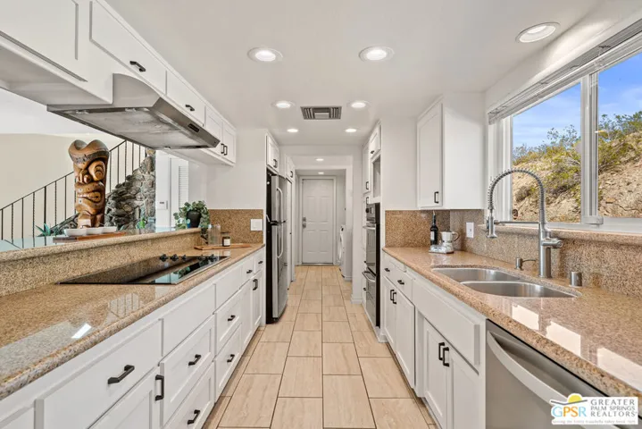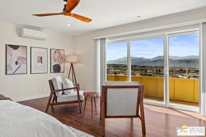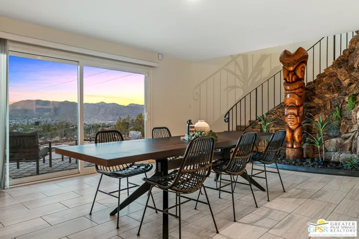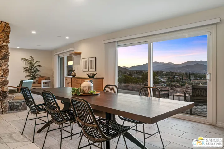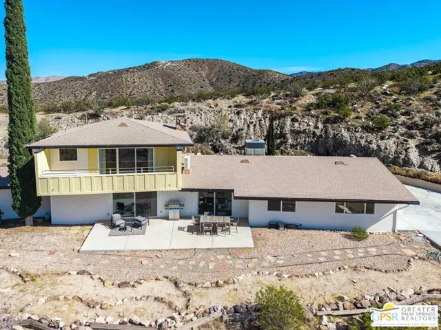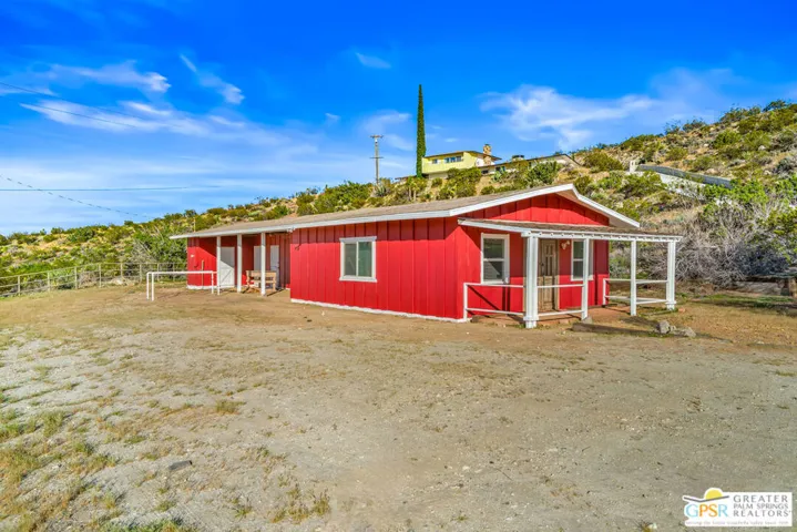 HORSE PROPERTY WITH VIEWS! Yucca Valley 4 BD | 3.5 BA | 3,065 SF | Barn & Corral | 5 Acres | Two Parcels Perched atop a hill, this striking mid-century home offers sweeping panoramic views and a rare combination of privacy and convenience, just minutes from town. The expansive open floor plan is anchored by a stunning natural rock fireplace that enhances both the living and dining areas. Custom rock detailing continues on the staircase, thoughtfully designed to showcase art and sculpture. The main level features three bedrooms; a junior primary suite, a guest bedroom, and a gym. Guest bedroom and gym share hall bath. Beautiful wood built-in cabinetry for ample storage. A powder room and laundry area are conveniently located just off the kitchen. Upstairs, the spacious primary suite captures breathtaking “forever” views and includes a walk-in closet, dedicated A/C, and a luxurious bathroom with dual vanities, and shower. The galley kitchen offers a breakfast bar, separate beverage and wine coolers, opens to the dining area, and frames the home’s incredible vistas. The oversized garage features epoxy flooring, a work area, and is wired for an electric vehicle charger. Equestrian amenities include a barn with four stables and a corral. This home is all electric. Call for your private showing!