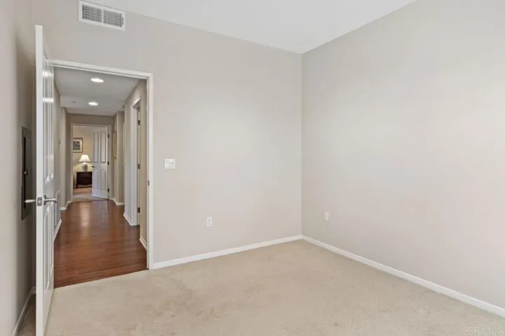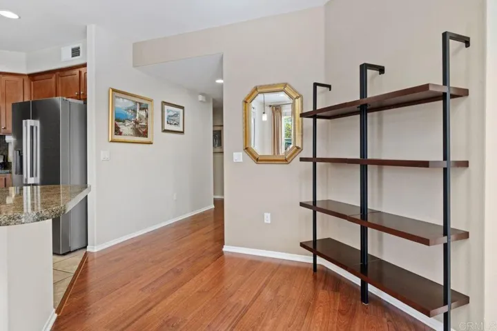 This exceptional 3-bedroom, 2-bath townhome is a single-level, ground floor, corner unit in Sorrento Mesa that offers an abundance of natural light and serene views. Step into this open-concept layout that seamlessly connects the upgraded chef’s kitchen to the living area. The kitchen features granite countertops, stainless steel appliances, including a brand new refrigerator and a convenient breakfast bar, perfect for casual dining and entertaining. Enjoy brand new hardwood floors throughout the living areas (installed Feb 2026) and two private patios with views. The primary suite has a walk-in closet, an additional wardrobe closet and two sinks on opposite walls in the bath. The home is freshly painted, and all three bedrooms have beautiful new carpet (installed April 2026). Other features include an attached two-car garage and a separate laundry room, including a new washer. The Sorrento Terrace community is a private collection of 71 stylish townhomes with a resort-like recreation area including pool, jacuzzi, cabanas and more. This quiet oasis is located just east of Sorrento Valley’s biotech and high-tech employment hubs, and very close to shopping, restaurants and world famous Del Mar and La Jolla beaches.