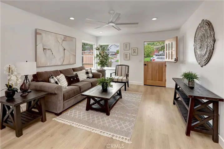 Fully upgraded Capo Beach cottage! Single story, 3bd 2bth tastefully renovated beach house on a flat usable lot. Detached rear-yard 2 car garage with new epoxy flooring and designer glass roll up door, & 3/4 Bathroom that has been re-purposed into usable flex-space(Not included in bed/bath count or square footage). Use the extra 400 square feet as a kid’s playroom / gym / office / TV room / workshop / or continue to use for parking. Side yard driveway ideal for storing your boat, RV, cars, or an expanded play area! This is a GREAT home for outdoor CA entertaining and totally secure for your kids and/or animals. So many new upgrades here to list! On the inside: Thin-line white shaker kitchen cabinets with floating white oak shelves and quartz countertops. Stainless steel appliances. Both bathrooms fully upgraded with vanities, tile, shower/tub and designer glass. Laminate flooring throughout house. In the back yard there is artificial pet friendly turf, above ground spa, and a large cedar deck with covering for your outdoor lounging and/or dining. Private ‘sound wall’ in rear yard works very well to provide an enjoyable back yard experience.