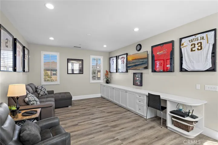Welcome to coastal luxury living in the highly sought-after Pacific Shores Villas, ideally located in the heart of Huntington Beach just two blocks from the sand. Perfectly positioned to enjoy the best of beachside living, this exceptional residence is within walking distance to Pacific City, premier restaurants, boutique shopping, and everything that makes Huntington Beach one of Southern California’s most desirable coastal destinations. This expansive 3,763 square foot corner home offers an ideal blend of sophistication and functionality, featuring five spacious bedrooms—each with its own en suite bathroom—including a highly desirable main-level bedroom perfect for guests or multi-generational living. Thoughtfully designed with both comfort and style in mind, the interior showcases luxury vinyl plank and wood tile flooring throughout, custom shiplap accents, and beautifully integrated built-ins that elevate both form and function. The open-concept layout is enhanced by a chef’s kitchen appointed with high-end appliances including a Wolf oven, complemented by a butler’s pantry for added convenience and seamless entertaining. A generous loft with built-in storage provides flexible living space, while the second-floor laundry room with sink adds everyday ease. Designed for long-term versatility, the home is prepped for a future elevator, with substantial storage space currently located beneath the stairs where installation can be accommodated. Indoor-outdoor living is effortless, with two balconies, two private patios, and a welcoming front courtyard entry—perfect for enjoying ocean breezes and coastal sunshine. The third-level bedroom offers a peek-a-boo ocean view, adding a subtle reminder of just how close you are to the water. Additional highlights include dual air conditioning units and an oversized three-car garage with extensive built-in storage. Situated within a gated community, residents enjoy beautifully maintained grounds with parks, greenbelts, and inviting spaces for outdoor enjoyment, all just steps from your front door. Whether you’re biking to the beach, walking to nearby dining, shopping, and entertainment, or simply enjoying the relaxed coastal lifestyle, this home captures the essence of living in the heart of Huntington Beach. A rare opportunity to own a truly exceptional property in one of the most coveted coastal communities—this is Southern California living at its finest. Welcome to Paradise!!!!