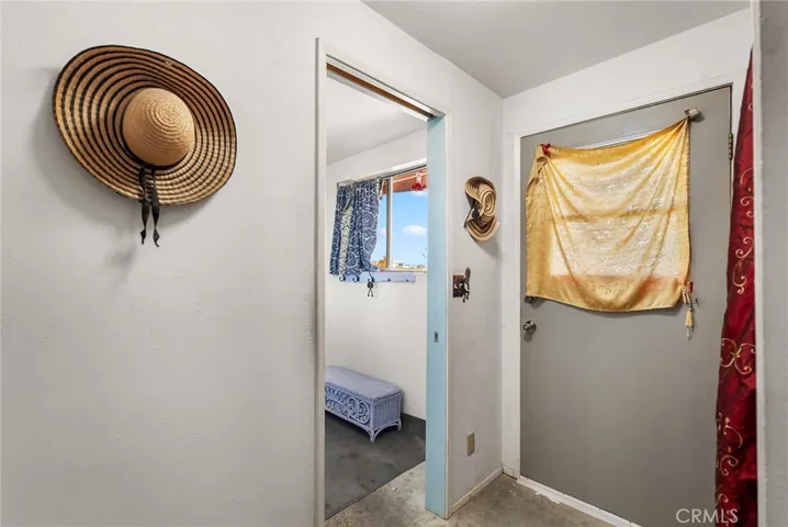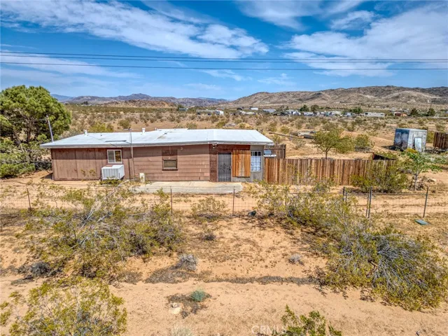 Set on 5 acres of buildable desert land in Landers, this 1957 built home offers a unique opportunity for investors or buyers looking to create a personalized retreat. With 774 square feet of living space, the property blends vintage character with untapped potential. Approximately half of the lot is fenced, providing a defined area for immediate use while leaving ample room for expansion, additional structures, or outdoor enhancements. Inside, the home features an open concept layout that connects the living room, kitchen, and dining area, creating a welcoming central space. Concrete floors and wood beam ceilings run throughout, adding to the home’s rustic desert charm. The kitchen is quaint and full of personality, complete with laminate countertops, a vintage white square tile backsplash, and warm wood paneling. Just off the kitchen, the dining area includes sliding glass doors that open to the yard, inviting in natural light and offering seamless indoor/outdoor flow. A standout feature is the sunroom, filled with abundant natural light from surrounding windows, along with a concrete floor and wood beam ceiling creating an ideal space for relaxing, entertaining, or reimagining as a creative studio. The bedroom is bright and comfortable, with built in lighting on either side of the bed, two closets, and two additional linen style storage closets. The bathroom includes a single sink vanity with generous counter space, a toilet, and a walk-in shower. Located in the peaceful high desert community of Landers, known for its wide open spaces, star filled skies, and proximity to Joshua Tree National Park, this property offers both tranquility and investment potential. With its vintage appeal and solid bones, this home is being sold as-is and does require some updates making it a perfect project for investors or those looking to restore and enhance a desert getaway.