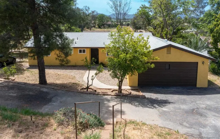 Your Homestead Awaits! Single-Story Ranch Home in the heart of Ramona 3 Bedrooms 2 Baths with a HUGE garage conversion bonus room! Approx. 1,600 Sq Ft 1/2 Acre Lot and no HOA. Approx 400 Sq ft is garage conversion. with Beautifully updated single-story ranch home offering a perfect blend of comfort, function, and country charm. Nestled on a spacious half-acre lot in the heart of Ramona, this property provides plenty of room to breathe, entertain, and enjoy the laid-back lifestyle this community is known for. Step inside to find a warm, inviting interior featuring laminate flooring, a bright open-concept living area, and a thoughtfully designed floor plan that maximizes every inch of space. The updated kitchen includes a range/oven and refrigerator, opening seamlessly into the dining and living areas—ideal for gatherings or quiet evenings at home. This property features three comfortable bedrooms and two baths, and a large converted garage bonus room that is approx 400 sq ft. Outside, the possibilities are endless. Plant a lavender field. Have the vegetable garden of your dreams. Collect eggs and bake a cake. Enjoy your morning coffee or evening sunsets on the deck overlooking the gently sloping landscape, surrounded by cross fencing and mature trees. There are so many amazing possibilities. The driveway accommodates multiple vehicles, with ample space for RV parking.