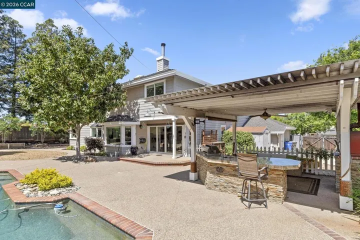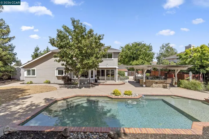 Tucked away on a peaceful cul-de-sac at the foothills of Mount Diablo, 1267 Quiet Circle offers a rare opportunity to own a truly one-of-a-kind property on the border of Clayton and Concord. This amazingly gorgeous home showcases exceptional pride of ownership in every detail, blending luxury, comfort, resort-style living and a short walk to top rated local schools! From the moment you arrive, you’ll notice the craftsmanship and care that sets this home apart – highlighted by a MUST-SEE custom garage and an expansive lot of over 16,000 square feet. The beautifully landscaped backyard is an entertainer’s dream, featuring a stunning in-ground Pebble Tec pool and spa, a custom outdoor fireplace with seating area, and a covered outdoor kitchen complete with a wood-burning pizza oven, BBQ, TV, and more. With large RV parking, custom planter boxes, and abundant space to host family and friends, this outdoor setting delivers the ultimate California lifestyle. Inside, the home continues to impress with tasteful updates including fresh paint and brand new carpeting throughout. Enjoy a chef’s kitchen equipped with a Wolf stove, wine fridge, and elegant granite countertops, all opening seamlessly to the home’s spacious living areas. Multiple gathering spaces – including the family room, living room, dining room, and wet bar – offer flexibility for both everyday living and entertaining. Two cozy gas fireplaces add warmth and charm. Upstairs, you’ll find four generously sized bedrooms, including a luxurious primary suite with an elevated retreat/office, large walk-in closet, and beautifully updated bathroom with Jacuzzi tub – creating a perfect sanctuary to unwind. Combining an unbeatable location, impressive upgrades, and resort-style amenities, 1267 Quiet Circle is a standout property that truly has it all.