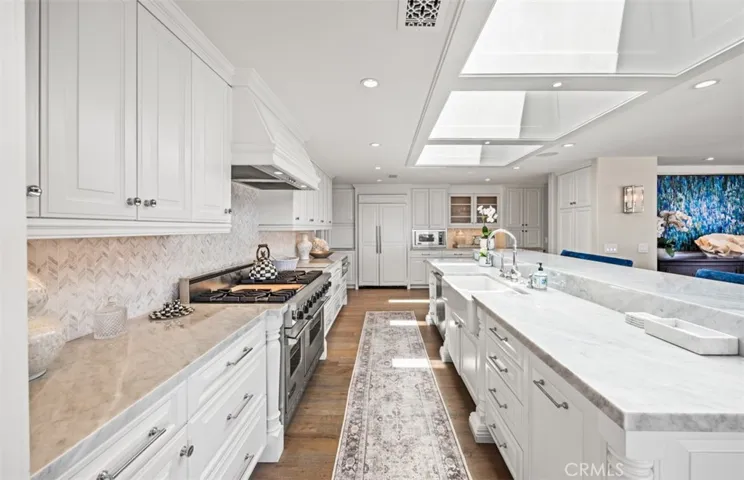 Set on a desirable corner lot within the highly desirable community of Cameo Highlands, this single-level residence offers a rare combination of privacy, thoughtful design, and coastal living, with ocean views enjoyed from the rooftop deck and access to one of the most secluded beaches in the area. The home has been carefully reimagined with a focus on both functionality and style, featuring 4 bedrooms, 4 bathrooms, and a dedicated office. The layout is designed for easy, everyday living while still offering great flow for entertaining. Outdoor spaces are a true extension of the home, with new stone hardscape, a covered lounge area, multiple seating spaces, and a six-hole putting green. The setting is ideal for hosting or simply enjoying the relaxed coastal environment, with private gated access enhancing both convenience and privacy. Inside, the kitchen is well-equipped with Carrara marble countertops, high-end stainless steel appliances, bar seating, and generous storage. It connects naturally to the dining area and main living space, creating a comfortable and open environment. The primary suite offers a quiet retreat, complete with a fireplace, spacious closet, and a well-designed bathroom. A secondary en-suite bedroom provides privacy for guests, while two additional bedrooms are positioned nearby with access to a shared bath. Additional features include a large laundry room with built-in workspace, a two-car garage with ample storage, and exclusive access to community beaches. A great opportunity to own a well-designed home in one of Corona del Mar’s most sought-after neighborhoods, offering a balance of privacy, location, and coastal lifestyle.