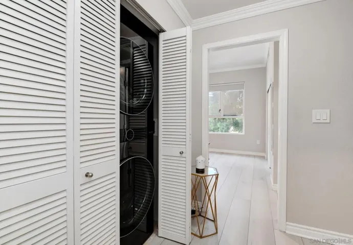 Discover this truly rare corner townhome unit in the sought-after Treo community! This private and rarely available corner unit offers convenience, privacy, and charm. With only one shared neighbor and extra windows throughout, this unit lives like a detached residence. Enjoy the ease of private walk-up access through your own street-level gated patio — perfect for pet owners and guests! Inside, soaring ceilings welcome you into a thoughtfully designed open floorplan. The main level features a modern kitchen with updated cabinetry, new stainless-steel appliances, fresh paint, stylish light fixtures, and a spacious island that flows into a dedicated dining area and private patio. The living room is warm and inviting with a cozy gas fireplace, there’s a convenient half bath and plus ample under-staircase storage. Upstairs, you’ll find two generously sized bedrooms with ceiling fans and each has its own en-suite bathroom, plus an in-unit stacked washer/dryer. The home includes one assigned parking space and a private storage unit, with easy access to rent a second parking space if needed. Treo residents enjoy an array of amenities including a pool, spa, fitness center, clubhouse, BBQ areas, and lushly landscaped courtyards. The community is pet-friendly with low HOA dues and an unbeatable walkable location. Located in the Columbia District, you’re just moments from the Trolley, Santa Fe Train Station, Seaport Village, Waterfront Park, and just steps from the vibrant neighborhood of Little Italy.