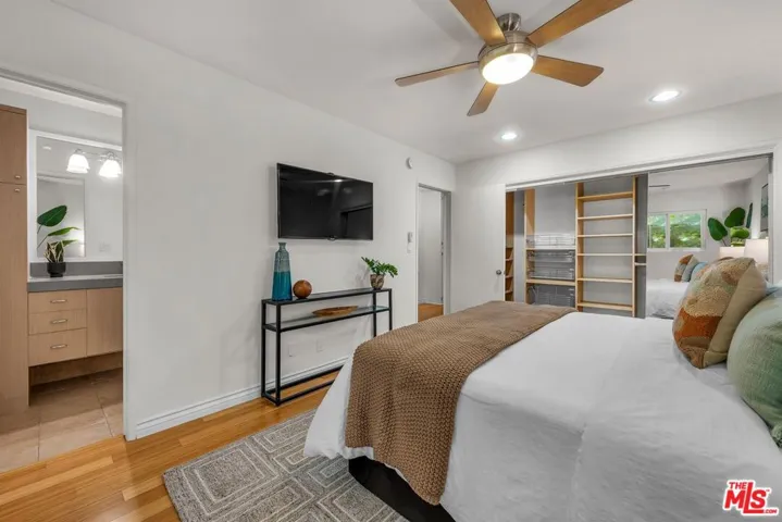 Beautifully updated 2-bedroom, 2-bath garden condo in a prime Santa Monica location. This condo features a spacious & lovely remodeled kitchen with ample cabinetry and storage, ideal for both daily living and entertaining. The open living area includes a fireplace, bamboo flooring, recess lighting throughout with dimmers. The primary suite offers a custom closet, ceiling fan and an ensuite bath for comfort and privacy. Built-ins and additional storage add everyday functionality. A private patio extends the living space outdoors. Low HOA dues. Located on a quiet residential stretch of Stanford St in Santa Monica’s Mid-City neighborhood, the property offers convenient access to everyday essentials and local favorites along Wilshire and Santa Monica Boulevard. Nearby spots like Milo & Olive, Whole Foods Market, and Erewhon provide dining and grocery options within minutes. The area is known for its walkability, access to public transit, and proximity to the beach, tech hubs, and the Third Street Promenade. Well-positioned for both lifestyle and commute, this is a rare opportunity to own in a central Santa Monica location at an exceptional value under $1M.