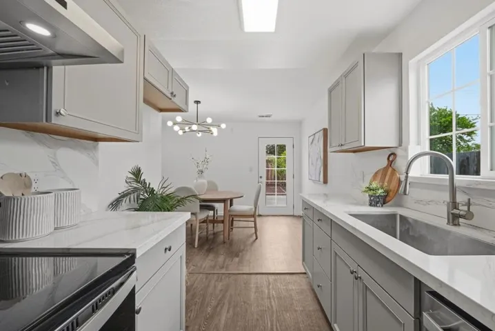 Welcome to this charming single-family home with 4 beds and 2 baths (1,167 sqft), plus an ADU with 1 bed and 1 bath (362 sqft). The home features a front yard with good privacy. Inside, a spacious living room with skylights and recessed lighting flows into the updated gourmet kitchen with quartz countertops and backsplash, stainless steel appliances, and ample cabinetry, connected to the dining area with a stylish ceiling light. A door opens to the backyard for indoor-outdoor living. The hallway includes sun tunnels. The primary suite is at the front with a bay window and en-suite bath with stall shower. A second bedroom also has a front-facing bay window, plus two additional bedrooms. Fresh interior and exterior paint throughout. The hallway bathroom offers a shower over tub. The 2025-built ADU in the backyard has its own entrance, a modern kitchen with quartz countertops and stainless steel appliances, a bedroom with wall unit AC, and an updated bathroom with stall shower and laundry, offering great rental income potential. Convenient location with 7 minutes drive to santa clara convention center, easy access to Hwy 101, 237, Lawrence, and San Tomas Expy, and a short commute to major tech companies. Do not miss this great opportunity!