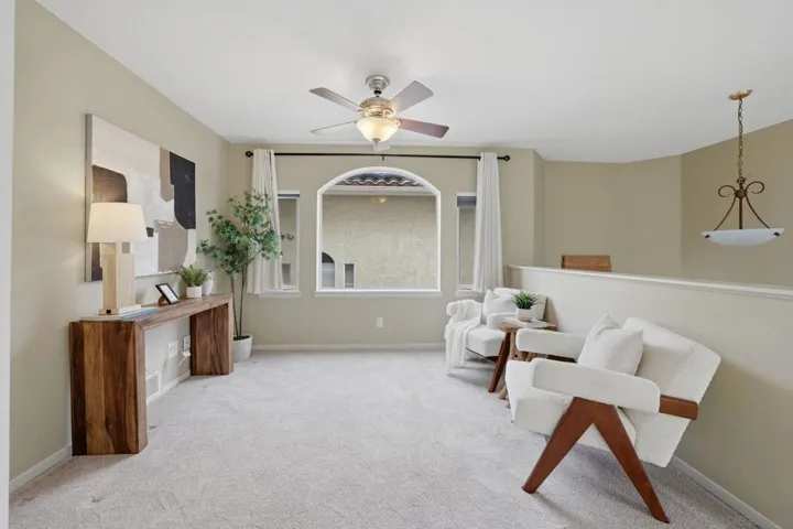 Tucked into one of Tierrasanta’s most peaceful pockets, this light-filled home offers the rare combination of privacy, views, and everyday ease. With no rear neighbors and open skyline sunsets, the backyard becomes a quiet retreat after long days. Inside, vaulted ceilings and abundant windows create an airy, calming feel, while the flexible 3BR + loft layout adapts to evolving needs, whether a home office, media space, or guest area. Thoughtful upgrades including newer roof, flooring, exterior paint, and tankless water heater reduce future maintenance and add long-term confidence. Ideally located near Mission Trails, major freeways, and top employment centers, this home delivers central access without the noise. A rare opportunity for those seeking space, privacy, and a home that simply works as life gets busier. Homes with this level of privacy and setting rarely come available in this pocket of Tierrasanta.