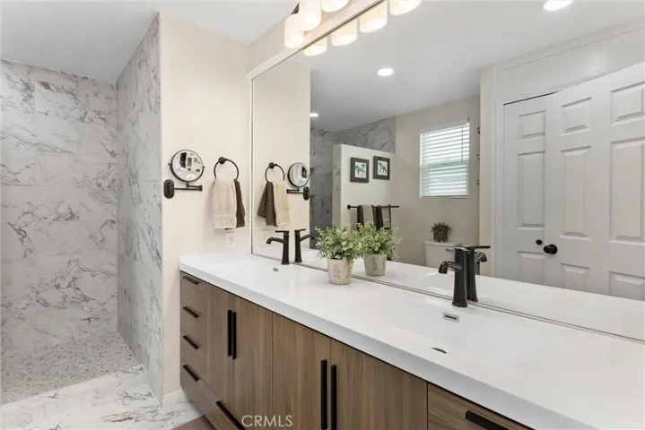 Both bedrooms function as dual primary suites, each offering privacy and comfort. Both bathrooms have been fully remodeled and feature beautiful tiled walk-in shower, new vanities, and linen closet—adding both style and functionality.