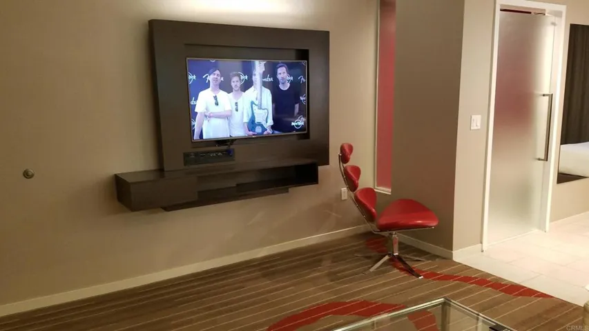 Rarely available 4th floor unit which gives you direct access to all the action at the pool, spa, cabanas, and San Diego’s best rooftop bar. This is a true hands off investment opportunity with a great cap rate for Southern California. Plus you can get treated like Rock Royalty as an owner by staying yourself or let family and friends enjoy up to 28 days per year at the Hard Rock Hotel in the Gaslamp. Make some great income paid out each month without the hassle of being a landlord. Perfect for 1031 Exchange funds or 1st time real estate investors! Gaslamp, Petco Park, Comic-con, Seaport Village, world-famous Nobu Restaurant, Rady Shell, and more are all at your doorstep. Perks include 24 hour access to the business center, concierge, and gym(just 1 floor down), fast wi-fi, valet parking, EV charging stations, discounts around town, etc. Suite 444 features a separate living area with lounge seating, signature Hard Rock king bed, multi-media system, walk-in glass shower with rainfall showerhead, fully-stocked Minibar, and two 47″ flat screen TVs. All furnishings included. Hotel operator takes care of everything for you to ensure consistent bookings and monthly payouts. Cash only purchase and cannot owner occupy more than 28 days per year.