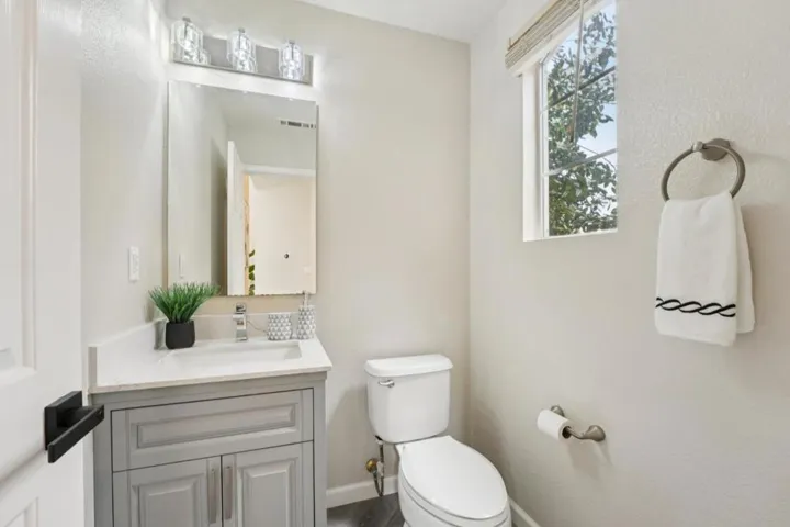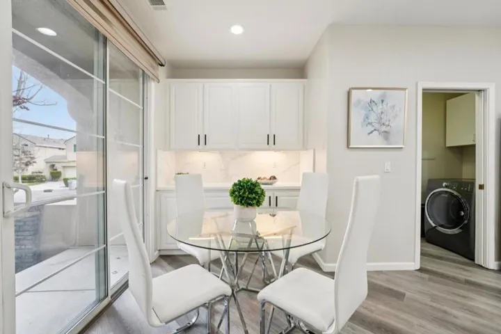Welcome to this lovely home in the highly sought-after gated Silver Creek Country Club. The beautifully updated 3-bedroom, 2.5-bath residence offers comfort, style, and modern convenience throughout, with soaring high ceilings bringing in ample natural light all day long. The remodeled kitchen features quartz countertops, stainless steel appliances, and newer smart upgrades. Custom Levolor smart window coverings, fresh interior paint, and newer carpet enhance the home’s bright and contemporary feel. The conveniently located main-level primary suite offers a walk-in closet, dual sinks, a soaking tub, and a separate shower, creating a private retreat. An interior laundry with a washer and dryer adds everyday ease. Step outside to a spacious and serene backyard with no rear neighbors, offering peaceful hill views. Enjoy stamped concrete, a trellis, grass area, tasteful landscaping, fruit trees and a bonus storage shed, perfect for relaxing or entertaining. HOA amenities include gate security, front yard landscaping and guest parking, adding both convenience and security. Don’t miss this exceptional opportunity to own a beautiful home in a premier country club setting.