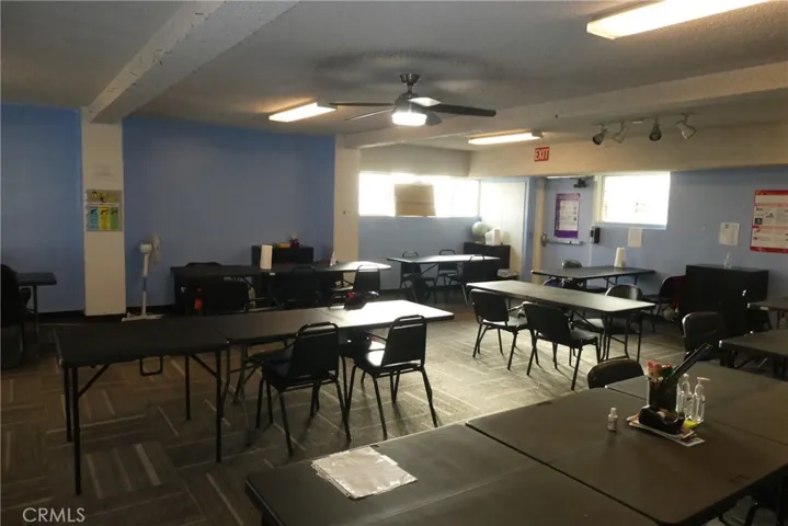 Main level used as a city approved meeting hall with large open area, built-in bar, lounge with tables and chairs, reception/greeting area, pool table, full kitchen, private office, storage areas and 2 restrooms.