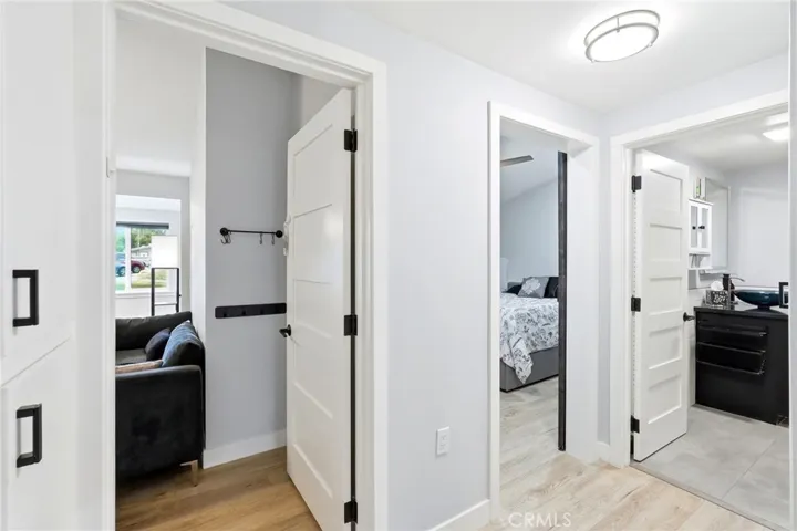 Additional highlights include new HVAC system, custom shelving in the primary bedroom closet, new windows and frames throughout, custom interior doors, updated flooring, and ceiling fans in every room. The home also features upgraded electrical with a new panel and wiring, along with enhanced lighting design that creates a bright and inviting atmosphere throughout.