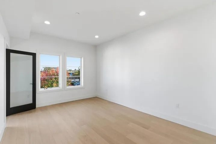 Newly completed and never occupied, this spacious condo offers modern living in a prime location just steps from dining and transit. Featuring the largest floor plan in the building at 1,425 sq ft, this 2-bedroom, 2.5-bath home includes a versatile bonus room off the kitchen, perfect for a home office or flex space. The thoughtfully designed split layout places bedrooms on opposite sides for added privacy. A bright, open family room with 9-foot ceilings flows seamlessly to an oversized private balcony through sliding glass doors. The primary suite features a walk-in closet and a beautifully finished ensuite bathroom. The home is equipped with all-new appliances, including a refrigerator, gas range, dishwasher, and in-unit washer and dryer. Enjoy year-round comfort with air conditioning and efficient heating. A convenient half bathroom near the entry and a stair-free interior enhance everyday livability. Additional highlights include assigned parking in a secure garage and exterior security cameras for added peace of mind. Ideally located near the San Carlos Caltrain Station, vibrant downtown San Carlos, and major commute routes, this home offers the perfect blend of comfort, style, and convenience.