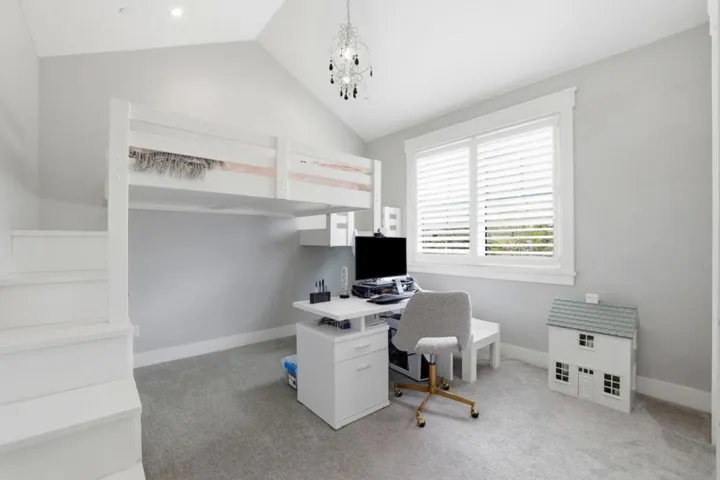This beautiful modern farmhouse is located in one of Willow Glens great neighborhoods and features open modern design w/ 10′ and vaulted ceilings, 8′ doors, oak flooring, shaker cabinetry, large Kitchen, slab island counter and an immense great room with stacking doors opening to a covered patio with fire pit. Built by Union Pacific, one of Silicon Valley’s premier builders that is known for quality construction. This 5 Bedroom 4 Bath is stunning with many custom touches including office/den w/dual work stations, Bedroom and full bath downstairs, an Au pair en suite bedroom. Primary suite with shower and separate tub. Kitchen features professional gas range with double ovens, custo refrigerator, 2 dishwashers, wine refrigerator, and ice maker. Rear yard features outdoor BBQ Island w/gas grill,smoker, and retractable awning and a faux lawn for water savings. Energy efficiency includes Tesla solar panels with two power walls and EV charging station in garage. This home is designed for seamless indoor/outdoor entertaining taking full advantage of the California Lifestyle.
