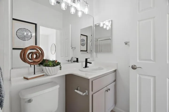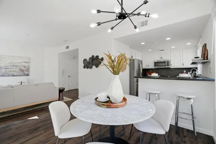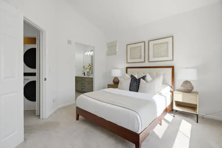 Light-filled & tastefully updated, this END-UNIT condo offers a fresh, modern feel & is move-in ready in the desirable Lancaster Gate community of Communications Hill. Fresh interior paint, an open layout, and abundant natural light create an inviting space. Dual primary suites offer a flexible floor plan suited for modern living. The kitchen features granite countertops, bar seating, recessed lighting, stainless steel appliances, and a dual-basin sink. The living area showcases laminate flooring, a modern light fixture, and space for a home office, plus a downstairs half bath for guests. Interior highlights include an August WiFi smart lock, Nest thermostat, Water Softener, FLOW Motion Sensor Kitchen Faucet, and Roman shades in the upstairs bedrooms. Enjoy in-unit LG washer and dryer. The primary suite features a spacious walk-in closet, plush carpet, and vaulted ceilings. A secondary bedroom with private bath offers comfort for guests or family. Attached two-car garage with EV charger. Located in the lower portion of Communications Hill for added privacy, near the Grand Staircase and scenic walking paths. Easy access to 87, 101, Capitol Expressway, and VTA light rail. Turnkey home with a well-managed HOA and strong reserves.