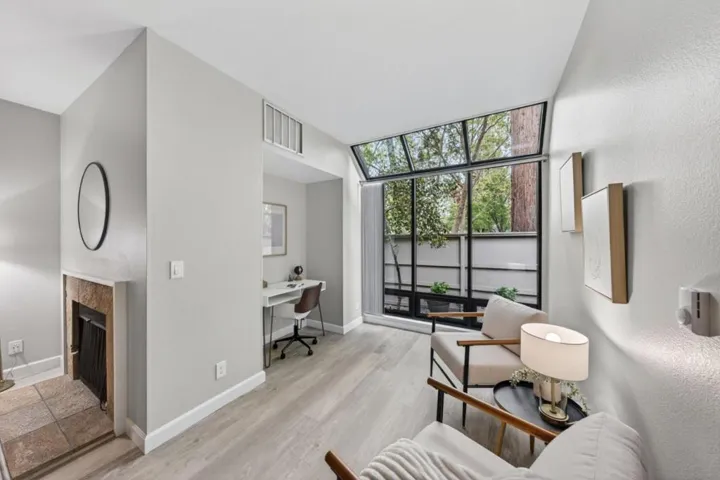 Beautifully renovated, extra-large condominium offering stylish and comfortable living. Thoughtfully upgraded throughout, this rare ground-floor residence blends modern finishes with an open, airy layout perfect for both relaxing and entertaining. Newer luxury vinyl plank flooring, abundant natural light, and a spacious open-concept design with a dedicated office nook ideal for working from home. The expansive living area features 9-foot ceilings, a cozy wood-burning fireplace, and seamless access to your private wraparound patio and fenced yard. The fully updated kitchen and bathroom shine with newer sinks, faucets, vanities, and modern light fixtures. The oversized bathroom offers dual sinks and separate dressing areas for added convenience. Newer stacked washer and dryer are included. Enjoy resort-style amenities including a community pool and spa, plus the convenience of one secured underground parking space and ample guest parking nearby. Moments from Almaden Lake Trail, retail, dining, light rail, and Highways 85 & 87. Set in a quiet, well-maintained community with a high rate of owner occupancy this home offers both comfort and peace of mind. This is a unique opportunity to own a beautifully upgraded condo in one of the area’s most convenient and desirable locations.